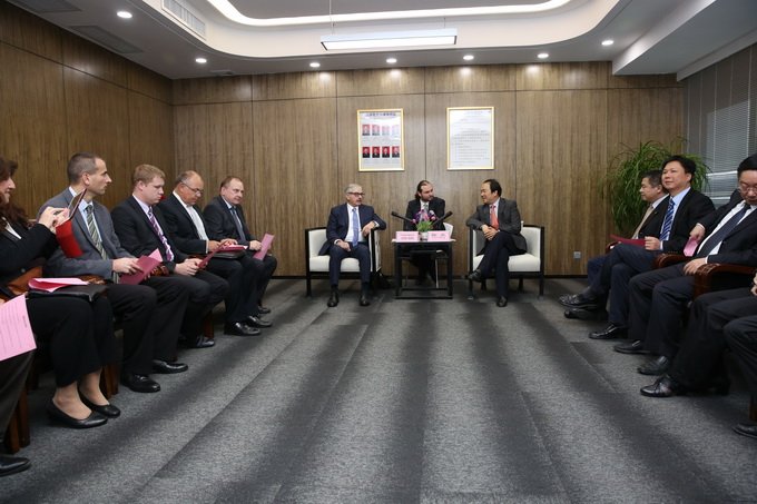 簽約儀式后,陳東會(huì)見(jiàn)弗朗西斯科•查洛佩斯基一行,雙方就在水處理、電商、“零排放”技術(shù)等多領(lǐng)域深入合作進(jìn)行座談交流。他表示,捷克工業(yè)技術(shù)在中國(guó)的認(rèn)可度很深,而中國(guó)市場(chǎng)非常廣闊,把捷克技術(shù)與中國(guó)市場(chǎng)有機(jī)結(jié)合起來(lái)是很有意義的事。此次簽約是有益于中捷友誼、中捷合作的事,相信通過(guò)這個(gè)示范帶動(dòng),將有更多捷克企業(yè)家來(lái)揭合作,將有更多產(chǎn)業(yè)合作在這里實(shí)現(xiàn)。中德金屬生態(tài)城擁有平臺(tái)優(yōu)勢(shì),完全可以成為捷克中小企業(yè)在中國(guó)尋求合作的平臺(tái)。他指出,揭陽(yáng)對(duì)捷合作有4大優(yōu)勢(shì),一是中德金屬生態(tài)城的基礎(chǔ)設(shè)施條件優(yōu)勢(shì);二是揭陽(yáng)對(duì)捷合作的企業(yè)家團(tuán)隊(duì)優(yōu)勢(shì);三是揭陽(yáng)電子商務(wù)的發(fā)展優(yōu)勢(shì);四是國(guó)家、省政府對(duì)中德金屬生態(tài)城的支持優(yōu)勢(shì)。他希望揭陽(yáng)市政府、捷方、協(xié)會(huì)共同努力,共建中捷產(chǎn)業(yè)合作的重要平臺(tái)。