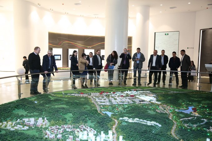 弗朗西斯科•查洛佩斯基一行參觀園區(qū)沙盤(pán),了解項(xiàng)目整體規(guī)劃及與德合作成效