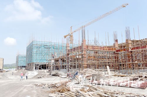 近日,記者來到中德金屬表面處理中心二期工程施工現(xiàn)場,只見一排排樁基屹立,部分廠房已完成樁基礎(chǔ)打樁、檢測,為了保證工期進度,施工人員采取各種防暑措施堅持施工,全力以赴確保今年底前完成部分廠房建設、2018年上半年投產(chǎn)。