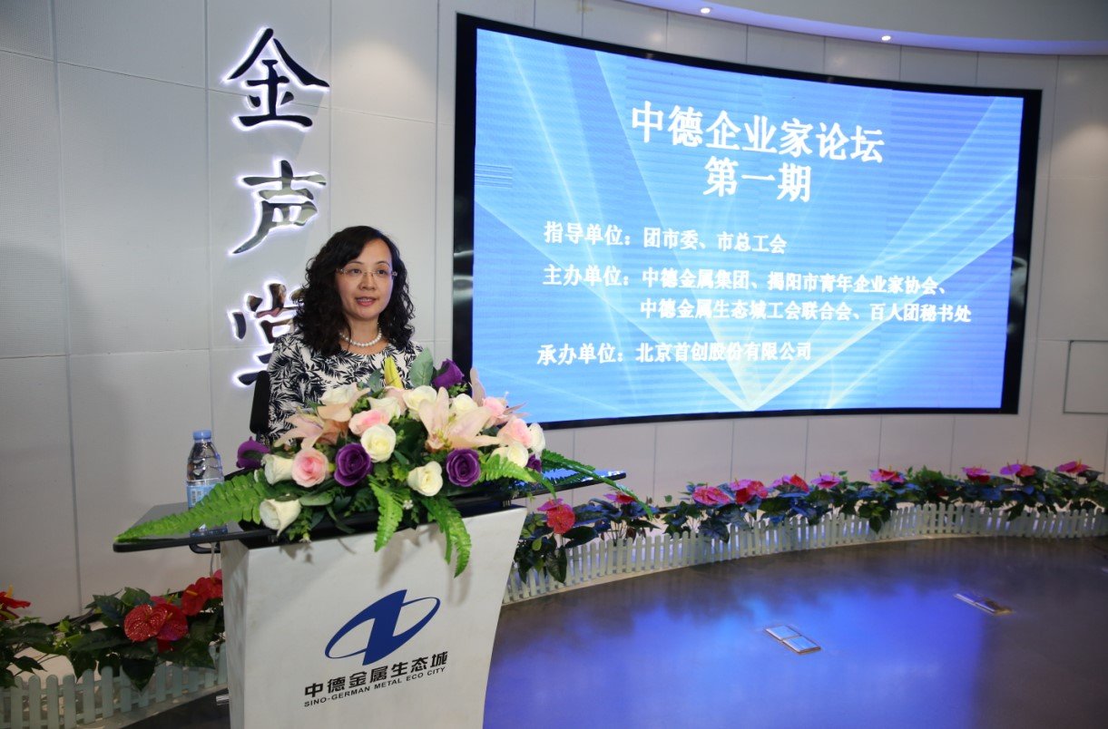 中德企業(yè)家論壇旨在貫徹落實全市經(jīng)濟工作會議的部署,緊緊圍繞平臺、企業(yè)、環(huán)境三個要素,為揭陽市培養(yǎng)更多具有國際視野的優(yōu)秀企業(yè)家和更具有創(chuàng)新發(fā)展素養(yǎng)的企業(yè)人才隊伍,服務(wù)國家“一帶一路”的戰(zhàn)略。中德金屬集團副總裁晉衛(wèi)東在致辭時表示,將以中德企業(yè)家論壇舉辦為契機,打造學習型特色園區(qū),提升園區(qū)企業(yè)家的綜合素質(zhì)和市場競爭力,進一步創(chuàng)造條件推進中德中小企業(yè)開展務(wù)實合作,促進更多合作成果在揭陽生根發(fā)芽、開花結(jié)果。