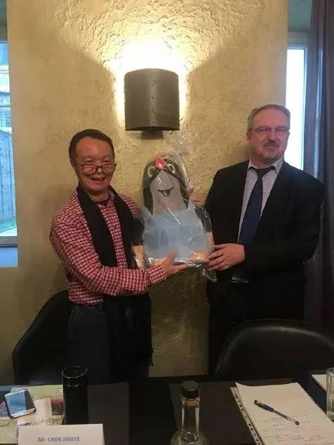 ▲捷方向金立方董事長(zhǎng)贈(zèng)送禮物——捷克國(guó)家級(jí)卡通形象“小鼴鼠”,寓意中捷友誼長(zhǎng)青