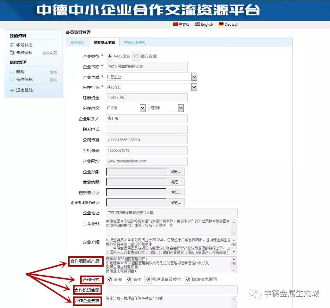 若您未成為我們的會(huì)員,可直接注冊(cè)成企業(yè)會(huì)員,然后將您注冊(cè)的企業(yè)名稱短信通知中德集團(tuán)招商部,我們會(huì)第一時(shí)間審核通過您的注冊(cè)。