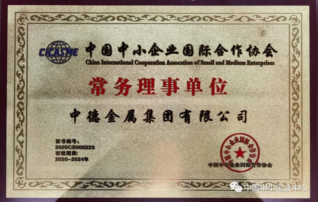 憑借在助推中小企業(yè)對(duì)外合作和創(chuàng)新發(fā)展方面的不懈努力和突出成績(jī),中德金屬集團(tuán)獲選中國(guó)中小企業(yè)國(guó)際合作協(xié)會(huì)常務(wù)理事單位,這是國(guó)家級(jí)行業(yè)協(xié)會(huì)對(duì)中德金屬集團(tuán)服務(wù)中歐中小企業(yè)雙向合作工作的高度認(rèn)可,也是對(duì)集團(tuán)在中小企業(yè)創(chuàng)新發(fā)展工作中突出貢獻(xiàn)的充分肯定,意味著中德金屬集團(tuán)將更好地為國(guó)內(nèi)中小企業(yè)提供更大的合作平臺(tái)和海內(nèi)外資源。