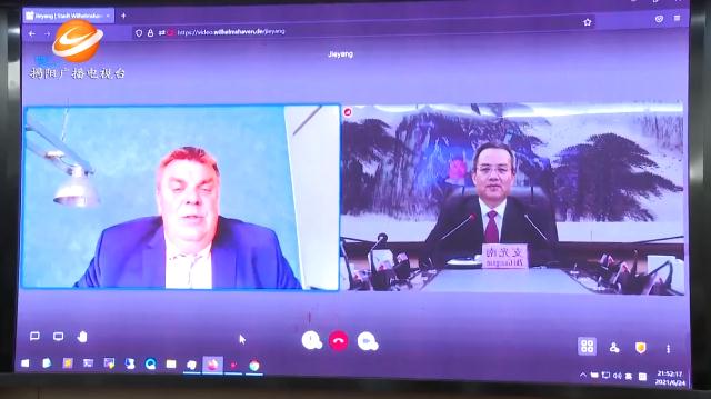 6月24日晚,揭陽市市長支光南與德國下薩克森州威廉港市市長卡斯騰•菲斯特舉行視頻會議,就兩市友好交流和務(wù)實合作深入交換意見。市有關(guān)部門及中國中小企業(yè)中心(德國)相關(guān)負責(zé)人參加會議。