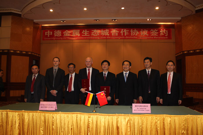 2013年4月27日,德國(guó)前國(guó)防部長(zhǎng)、社民黨前主席魯?shù)婪颉ど碃柶较壬恍性俅紊W臨揭陽(yáng)市金屬企業(yè)聯(lián)合會(huì)訪問,并與聯(lián)合會(huì)正式簽訂中德金屬生態(tài)城合作協(xié)議。市領(lǐng)導(dǎo)陳綠平、陳東、黃耿城、陳澄民、陳定雄等與揭陽(yáng)金屬企業(yè)家代表共同出席有關(guān)活動(dòng)。