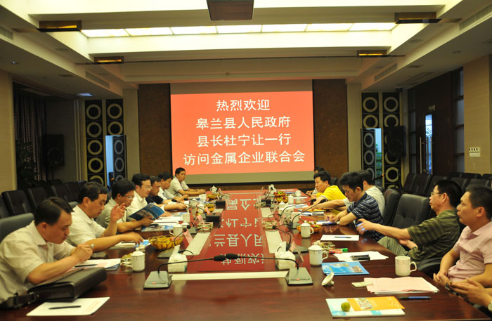 在陳東市長(zhǎng)攜揭陽(yáng)代表團(tuán)赴甘肅皋蘭縣調(diào)研并簽訂合作意向書一周之后,2013年7月15日,皋蘭縣縣長(zhǎng)杜寧讓一行在市政協(xié)副主席陳定雄、市政府副秘書長(zhǎng)林興國(guó)等的陪同下參觀考察了揭陽(yáng)市金屬企業(yè)聯(lián)合會(huì)。揭陽(yáng)市金屬企業(yè)聯(lián)合會(huì)會(huì)長(zhǎng)吳克東、執(zhí)行會(huì)長(zhǎng)林眾偉陪同參觀。