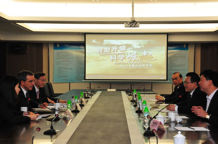 11月19日,法國前交通部長、人民運動聯(lián)盟副主席蒂埃里·馬里亞尼先生在揭陽副市長曾瑞如的陪同下,前往中德金屬生態(tài)城現(xiàn)場考察,并到訪市金屬企業(yè)聯(lián)合會開展交流座談。蒂埃里•馬里亞尼詳細聽取了德企進園投資的相關(guān)匯報,對園區(qū)在短期內(nèi)取得的顯著成效表示震驚,表達了與中德金屬集團合作的強烈意愿,對項目發(fā)展前景充滿信心。