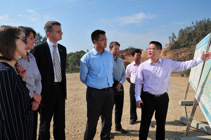 王福靈向貝爾恩德•埃邁爾一行介紹園區(qū)整體規(guī)劃