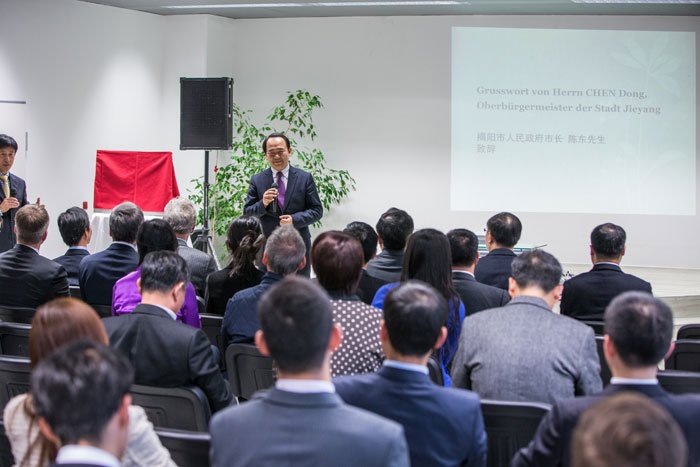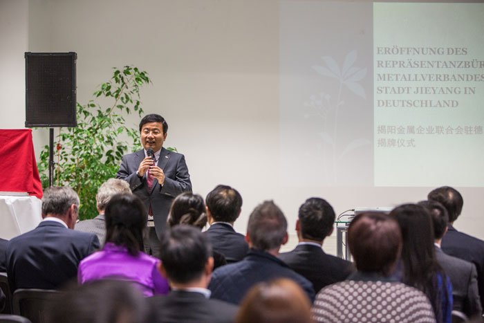 揭陽(yáng)市金屬企業(yè)聯(lián)合會(huì)駐慕尼黑代表處揭牌儀式現(xiàn)場(chǎng)