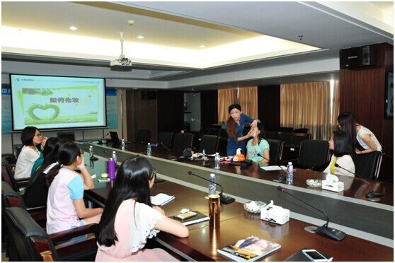 鄭小姐通過(guò)現(xiàn)場(chǎng)化妝示范展開(kāi)培訓(xùn),并從第一步護(hù)膚到描眉、畫眼線、上唇彩等注意事項(xiàng)做了詳細(xì)的解說(shuō)。女性員工在觀摩示范的同時(shí),不時(shí)向培訓(xùn)師詢問(wèn)了化妝品牌、著裝打扮、配飾搭配等方面的問(wèn)題。鄭小姐結(jié)合自身經(jīng)驗(yàn),——做了細(xì)致的解答。整場(chǎng)培訓(xùn)內(nèi)容切合實(shí)際,氣氛輕松活潑,贏得在場(chǎng)員工的熱烈掌聲。此外,她給在座員工傳閱了《人影攝像化妝指南》一書(shū),通過(guò)全面的化妝理論知識(shí),讓學(xué)員對(duì)職場(chǎng)妝扮有了更為深入的了解。