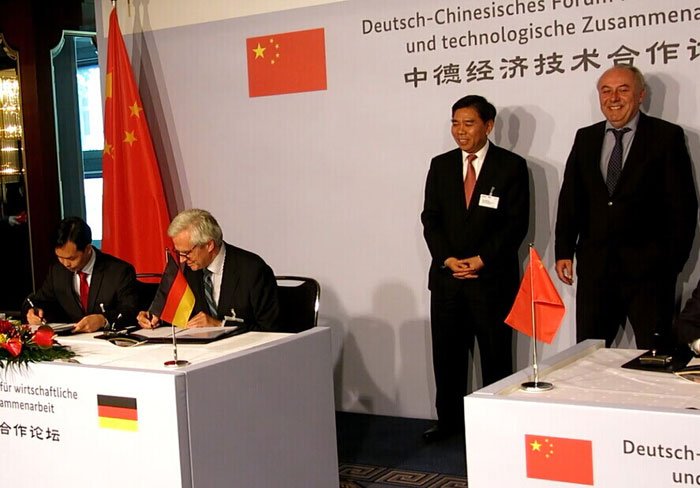10月10日,國(guó)家總理李克強(qiáng)在柏林與德國(guó)總理默克爾共同主持第三輪中德政府磋商,并發(fā)表了以“共塑創(chuàng)新”為主題的《中德合作行動(dòng)綱要》。這一《綱要》納入200多項(xiàng)具體合作倡議、項(xiàng)目和舉措,涵蓋中德合作20多個(gè)細(xì)分領(lǐng)域,是迄今為止中德之間內(nèi)容最豐富的一份共同文件。