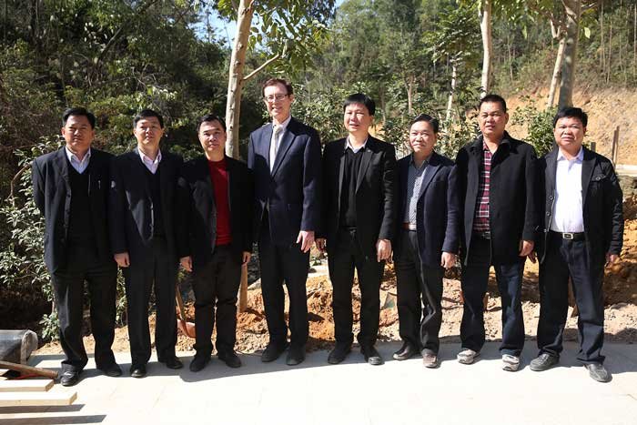 呂海慕與揭陽有關(guān)領(lǐng)導(dǎo)、中德金屬集團董事長吳克東在萬畝森林公園植樹后合影