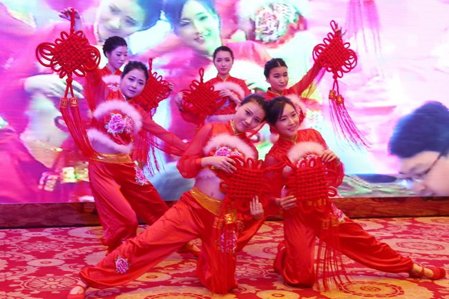 隨后,開場民族歌舞《好運(yùn)來》火熱開幕,把現(xiàn)場氣氛點(diǎn)綴得熱鬧、溫馨。精心編排的古箏合奏、三句半、歌舞、魔術(shù)等節(jié)目輪番上演,形式各異,贏得在場陣陣掌聲。其中,小品《五大中心賣瘋了》將中德金屬生態(tài)城的首期核心項(xiàng)目融入到小品當(dāng)中,燃起了全場的高潮,讓觀眾在爆笑之余對公司項(xiàng)目有了更深的印象。觀賞之余,在座的外賓按耐不住內(nèi)心的歡樂,登臺參與游戲環(huán)節(jié)。中西合璧的團(tuán)隊(duì)競賽,兩種文化的完美交融,讓這次年會別有一番意義。