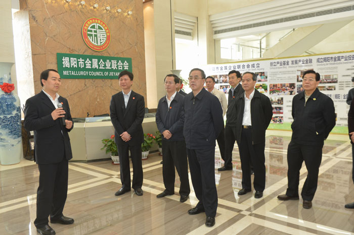 參觀過程中,胡春華書記充分肯定了揭陽(yáng)市金屬企業(yè)聯(lián)合會(huì)創(chuàng)新型的實(shí)現(xiàn)政府引導(dǎo)、協(xié)會(huì)主導(dǎo)、市場(chǎng)化運(yùn)作模式,強(qiáng)調(diào)要把加快揭陽(yáng)金屬產(chǎn)業(yè)經(jīng)濟(jì)發(fā)展作為重要任務(wù),為加快打造粵東經(jīng)濟(jì)增長(zhǎng)極、沿海經(jīng)濟(jì)增長(zhǎng)極,為努力走出一條粵東城市群建設(shè)發(fā)展新路做出先進(jìn)表率。胡春華書記深入市金屬企業(yè)聯(lián)合會(huì)調(diào)研指出,我市加快金屬產(chǎn)業(yè)轉(zhuǎn)型升級(jí)的工作思路很好,工作措施扎實(shí)推進(jìn),要求市相關(guān)部門認(rèn)真抓好落實(shí),把揭陽(yáng)市金屬產(chǎn)業(yè)發(fā)展的宏偉藍(lán)圖變成現(xiàn)實(shí)。