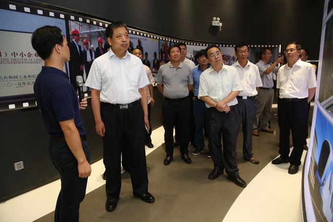 周孟波一行參觀中德金屬生態(tài)城營銷展廳,聽取園區(qū)建設的情況介紹