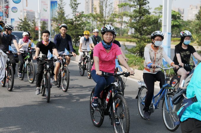 本次騎行路線從宏和大廈出發(fā),途徑臨江北路、揭陽樓廣場、206國道、云路鎮(zhèn)、中德金屬生態(tài)城,全程約20公里。一路上,身穿各色運動服的騎友們個個神采飛揚,奮力向前,與道旁的綠樹相映成趣,成為一道亮麗的風景線,吸引了眾多路人贊賞的目光。