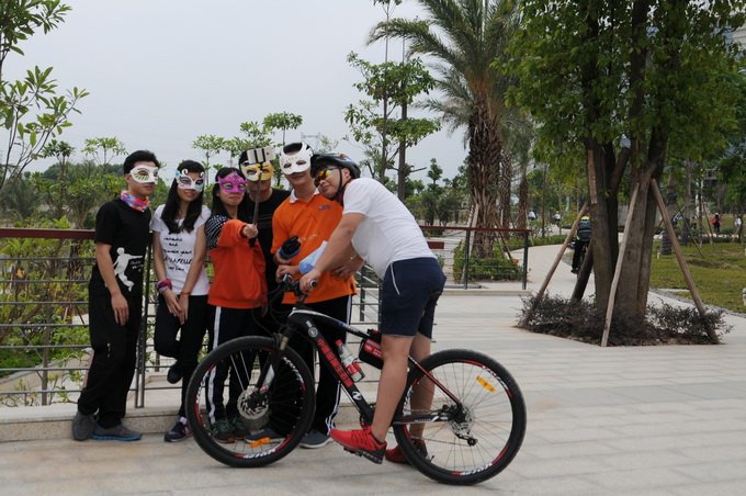 抵達中德金屬生態(tài)城后,騎友們在形成“一河兩岸”生態(tài)風景的雕塑公園參觀游賞。隨后,大家前往萬畝森林公園,開始萬圣節(jié)主題活動。作為活動的壓軸大戲,“撕名牌”游戲?qū)F(xiàn)場的氣氛推向了高潮。一時間,整個森林公園歡樂爆棚,倍增了生機與活力。