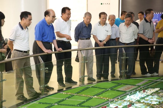 老干部一行觀看項(xiàng)目沙盤(pán),了解園區(qū)規(guī)劃布局及其建設(shè)進(jìn)展