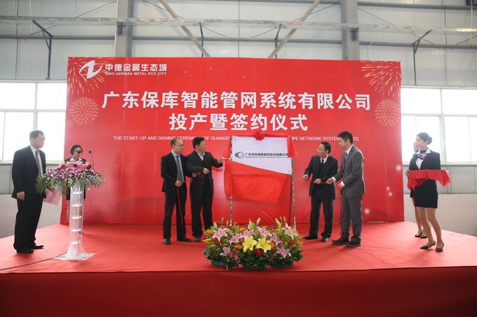 經(jīng)過連續(xù)8個(gè)月的緊張籌建,廣東保庫(kù)智能管網(wǎng)系統(tǒng)有限公司首條生產(chǎn)線于21日成功投產(chǎn),成為中德金屬生態(tài)城首家投產(chǎn)企業(yè)。揭陽(yáng)對(duì)德合作“百人團(tuán)”首獲碩果,標(biāo)志著中德金屬生態(tài)城對(duì)德(歐)合作邁出了具有實(shí)質(zhì)性意義的重要一步。副市長(zhǎng)張時(shí)義等市領(lǐng)導(dǎo)及中德金屬集團(tuán)相關(guān)領(lǐng)導(dǎo)參加活動(dòng)。